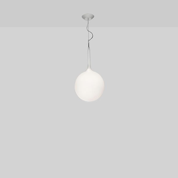 Castore d’Artemide est un luminaire suspendu, fait de verre soufflé blanc opaque, assurant une diffusion très douce de la lumière. Le diffuseur est renforcé par une tige effilée amovible émettant une lueur très douce.il est disponible en quatre tailles.