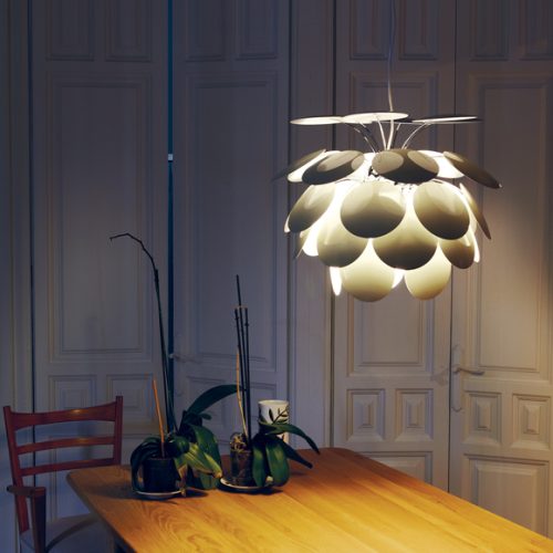 Corsica est une suspension en métal noir sur tige, faite de fines lamelles métalliques laissant entrevoir l’ampoule qui peut être choisie selon l’ambiance souhaitée. avec sa délicatesse elle est idéale pour les chambres à couchers, les petites entrée et même les îlots de cuisine.