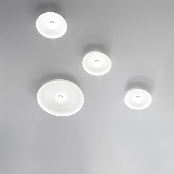 Disk est un plafonnier ainsi qu’une murale offrant une atmosphère chaleureuse et intime. Une grande soucoupe de lumière dorée, diffusant doucement partout votre chambre ou encore votre salon, comme le son chatoyant d’un gong. Des rayons brillants de lumière vive inonderont toutes vos surfaces intérieures.