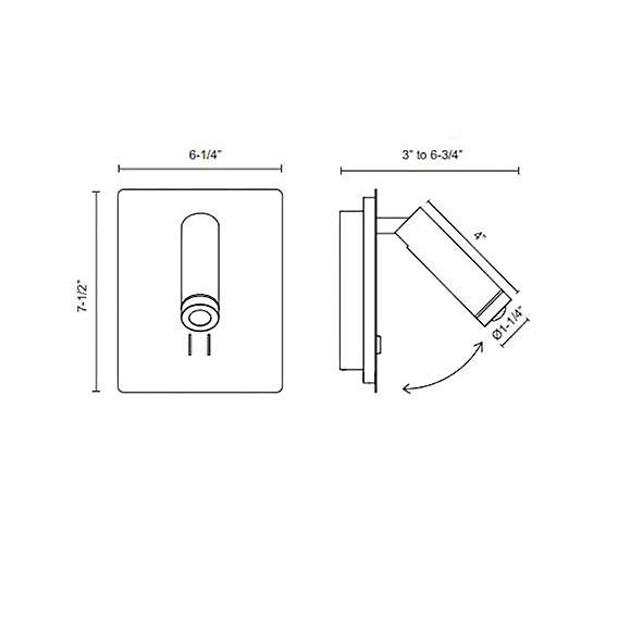 Dorchester est une lampe murale de chevet constituée d’une plaque rétroéclairée et d’un spot DEL orientable de forme cylindrique muni d’une lentille en verre optique au bout. Le retro éclairage qui sert de lumière d’ambiance possède son propre interrupteur, tout comme le spot qui offre une lumière plus dirigée. La plaque arrière de 6.25” x 7.5” a deux interrupteurs sur le devant et le spot DEL qui mesure 4” de long et d’un diamètre de 1.25”.