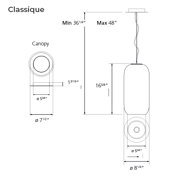 - Source lumineuse : 1x A19 max 22w (Classique 17po), 1x E12/G16.5 (Mini 12po) | DEL