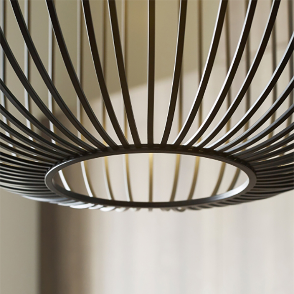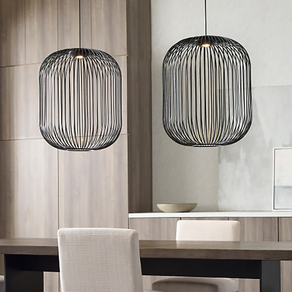 Kai, luminaire suspendu moderne de Techlighting, tire sa forme de la lanterne japonaise traditionnelle. Doté de tiges métalliques parfaitement espacées et intégrant la technologie moderne DEL, il incarne la parfaite transition des styles et des époques en un bel objet à la fois décoratif et fonctionnel. Le luminaire Kai est offert en deux tailles Kai 1 (petit) et Kai 2 (grand) et en trois superbes finis : blanc mat, noir mat ou laiton.