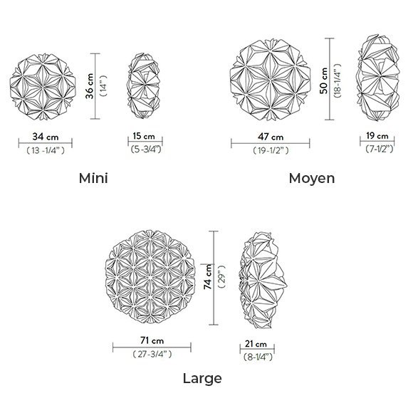 La Vie est un luminaire pouvant s’installer au mur ou au plafond. Avec son motif géométrique harmonieux, il est proposé en trois tailles et cinq couleurs différentes offrant de multiples possibilités. Ce luminaire convient à tous types d’environnements intérieurs, de la chambre au salon, en passant par le corridor ou encore la salle de bain.