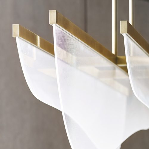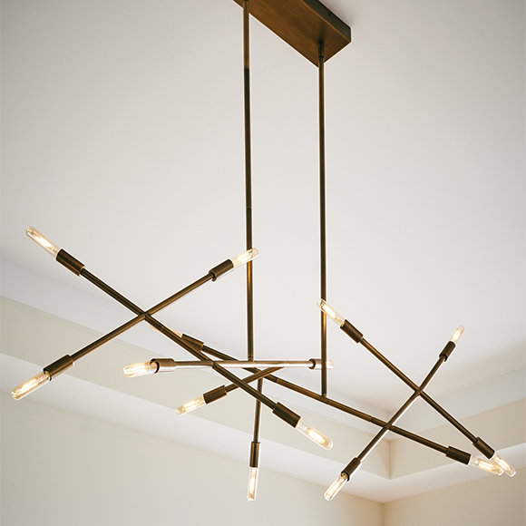 Line Wave 2 est une suspension linéaire à la forme asymétrique ornée de 12 ampoules Del, qui habillent gracieusement l’espace de leur lumières chaleureuse. Idéale pour une salle à dîner ou au dessus d’un îlot de cuisine.