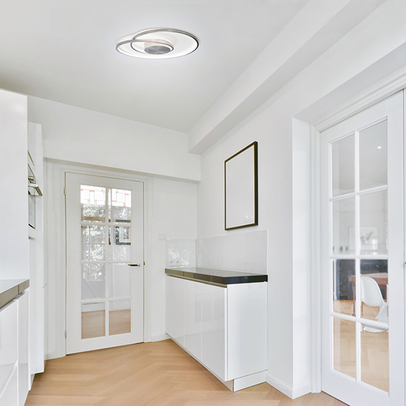 Avec son large diamètre et sa faible hauteur, il convient parfaitement aux espaces avec plafond bas et aux pièces larges.