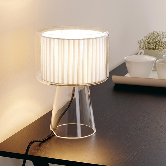 - Structure en verre soufflé clair et un diffuseur intérieur en textile.