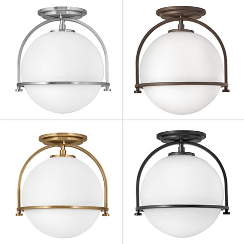 • Semi-plafonnier métallique au fini chrome.