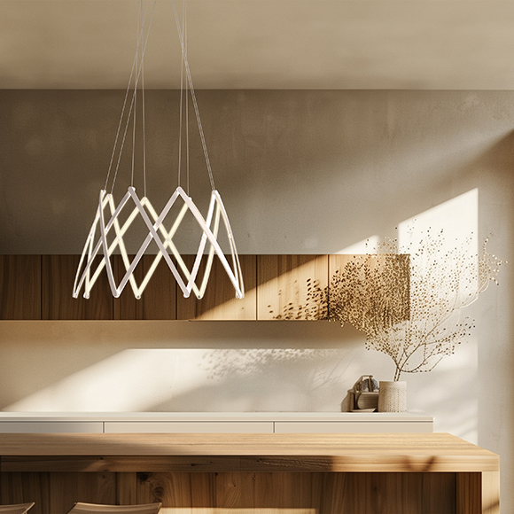 Idéale au-dessus d’une table de salle à manger, d’un îlot de cuisine, dans un hall d’entrée ou un espace de vie à aire ouverte, Stella devient une véritable pièce signature qui transforme l’ambiance avec élégance.