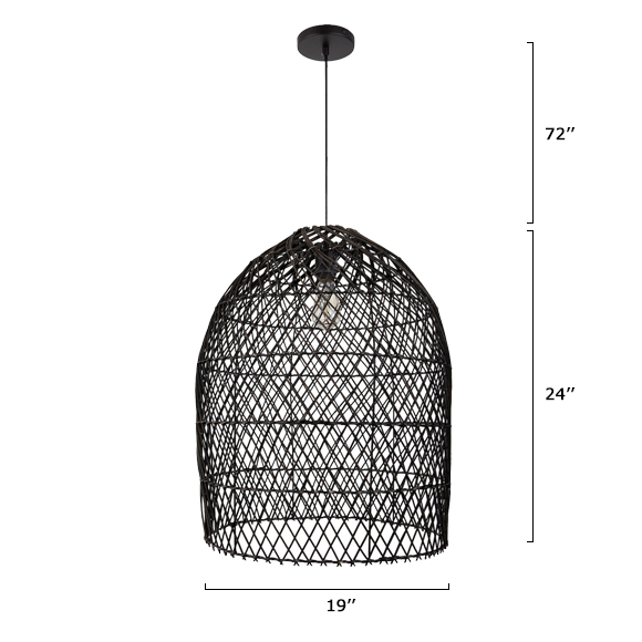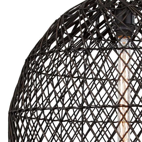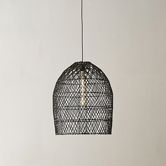 Tabuk est une suspension à la forme d’un panier, entièrement fait en rotin naturel peint noir.