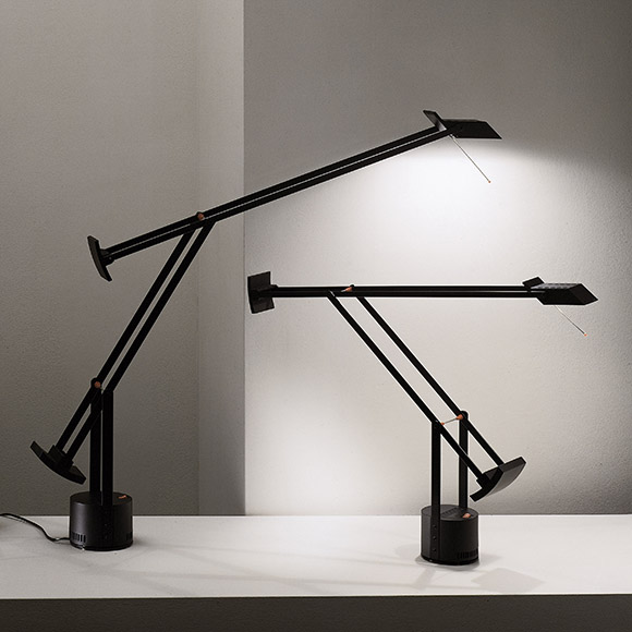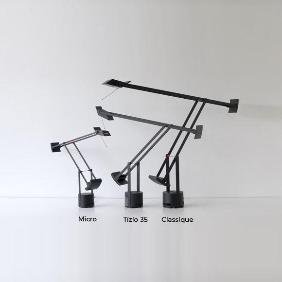 Tizio est une lampe de table qui reflète l’équilibre esthétique et fonctionnel. Dessinée par Richard Sapper en 1972, elle s’inscrit parmi les grands classiques de design et fait partie de la collection permanente du MoMa. Avec sa tête inclinable, son système de contrepoids et ses bras délicatement équilibrés qui conduisent le courant électrique, la Tizio représentait une avancée technologique importante qui lui valut un Compasso d’Oro en 1979. Elle demeure une merveille de conception moderne et une icône de design.