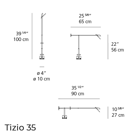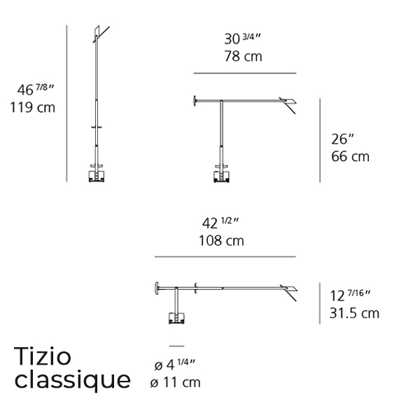 - Source lumineuse : 1 x 20W (Micro) – 35W (Tizio 35) – 50W (Classique) | Halogène (incl.)