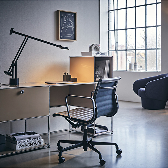 Tizio est une lampe de table qui reflète l’équilibre esthétique et fonctionnel. Dessinée par Richard Sapper en 1972, elle s’inscrit parmi les grands classiques de design et fait partie de la collection permanente du MoMa. Avec sa tête inclinable, son système de contrepoids et ses bras délicatement équilibrés qui conduisent le courant électrique, la Tizio représentait une avancée technologique importante qui lui valut un Compasso d’Oro en 1979. Elle demeure une merveille de conception moderne et une icône de design. Cette version adaptée à la plus récente technologie DEL est un ajout à la collection.