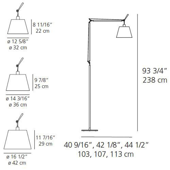 - Disponible avec un corps en aluminium poli ou noir mat uniquement avec l’abat-jour noir.