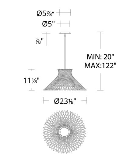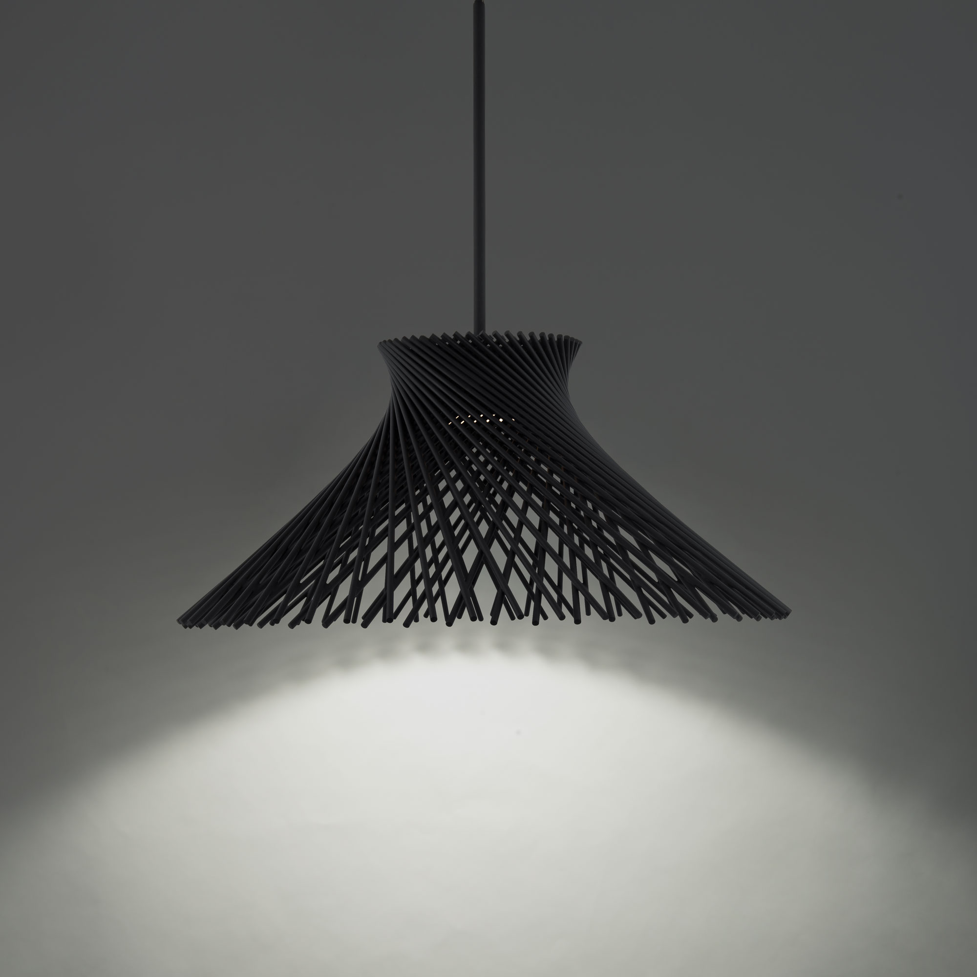 Zenya est une suspension DEL minimaliste inspirée du style Japandi, arborant un abat-jour en treillis métallique noir ou or qui abrite une source lumineuse DEL, son diffuseur en acritique mince et givré adoucis la lumière et procure une ambiance agréable et chaleureuse.