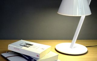 Corps en aluminium et abat-jour en plastique léger. Disponible en rouge, noir ou blanc. Diffuseur au-dessus et en-dessous en méthacrylate. Cordon d’alimentation muni d’un interrupteur. Source lumineuse : 1 x 6W E12 | LED. La couleur Rouge n'est plus offerte.